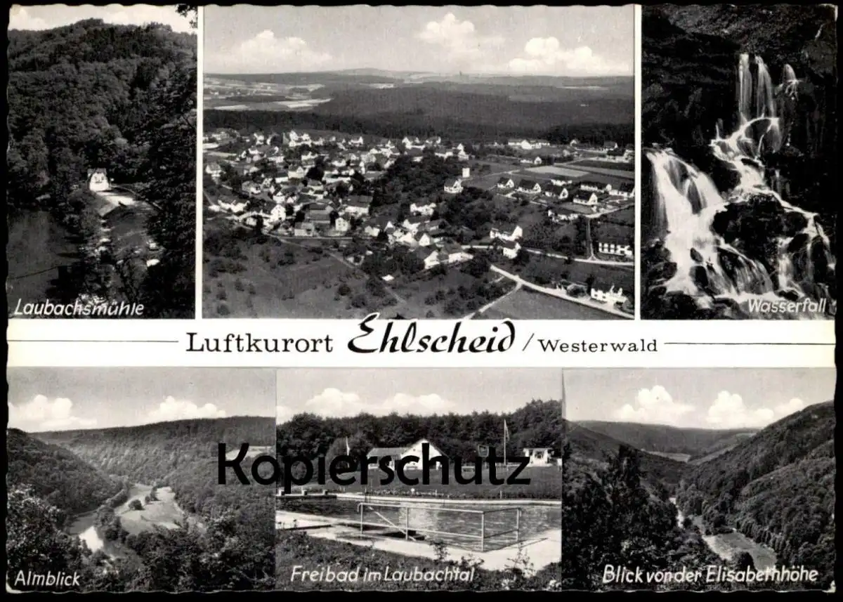 ÄLTERE POSTKARTE EHLSCHEID WESTERWALD LAUBACHSMÜHLE FREIBAD IM LAUBACHTAL ALMBLICK WASSERFALL BLICK VON DER ELISABEHHÖHEVerlag: Cramers, Dortmund