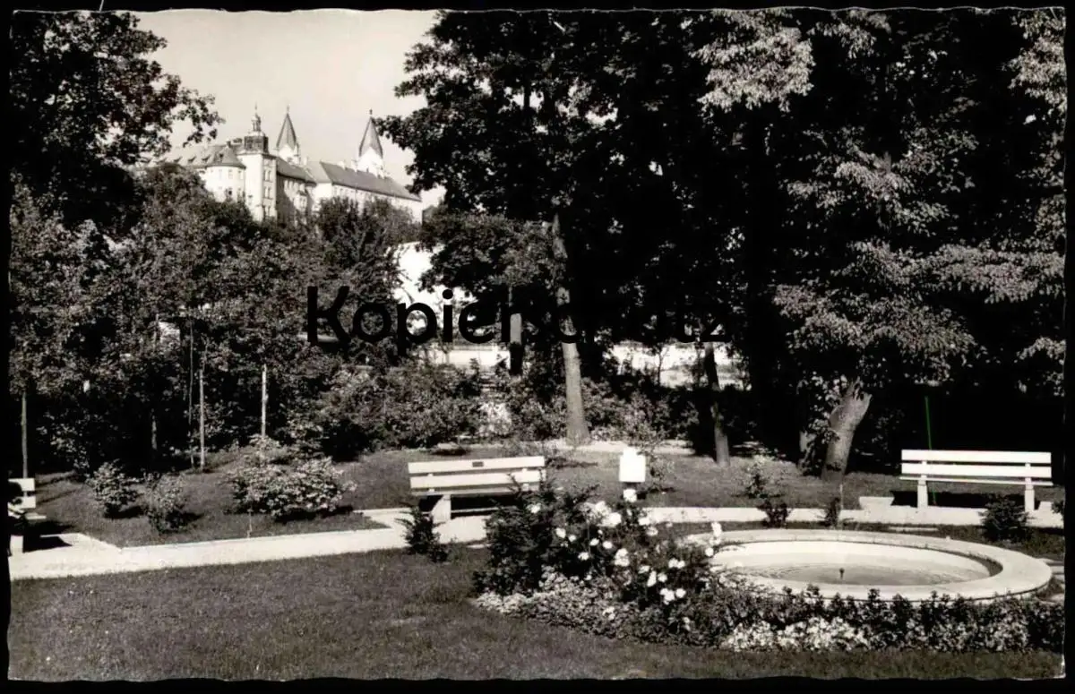 ÄLTERE POSTKARTE FREISING ANLAGEN MIT DOMBERG BRUNNEN SPRINGBRUNNEN BASSIN SITZBANK AK Ansichtskarte postcard cpa