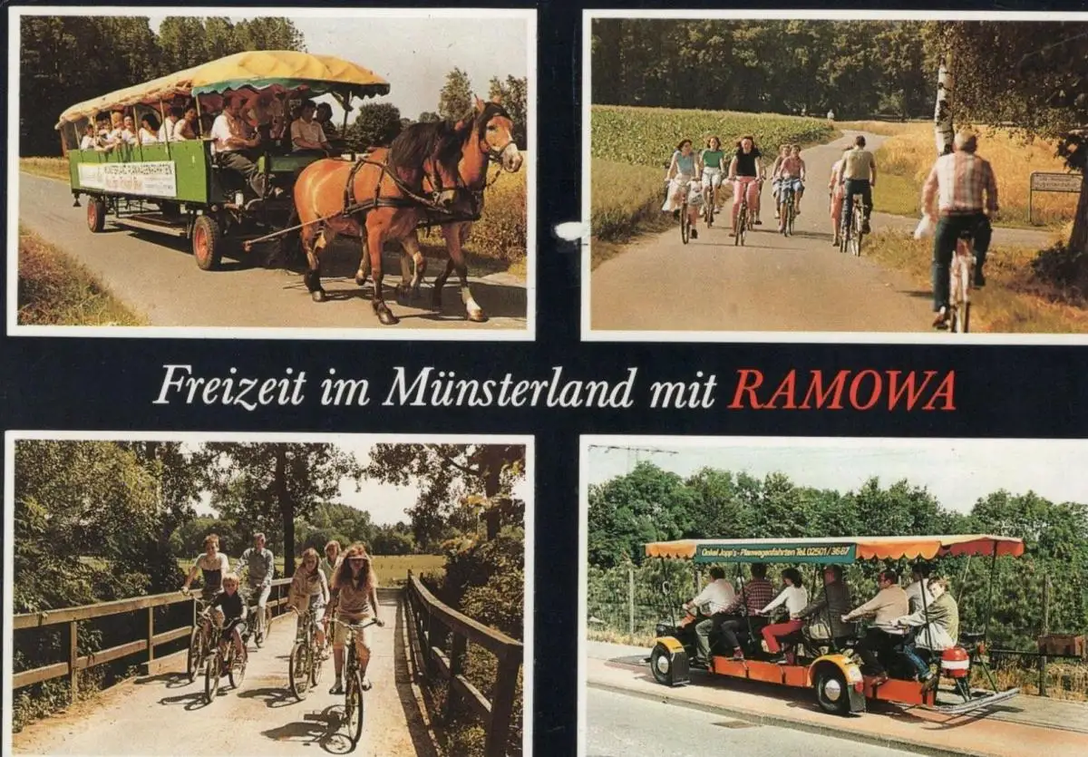 ÄLTERE POSTKARTE FREIZEIT IM MÜNSTERLAND MIT RAMOWA OSTAUSGANG HAUPTBAHNHOF MÜNSTER Hiltrup Ansichtskarte postcard cpa