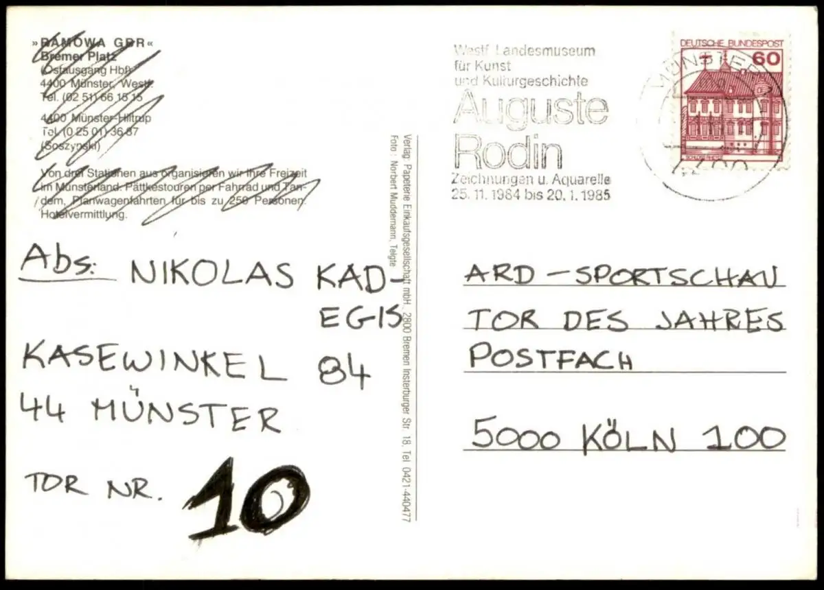 Gelaufen: 07.01.1985 mit Stempel Münster nach Köln