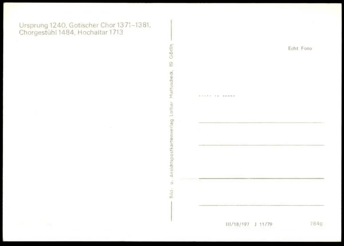 ÄLTERE POSTKARTE GÖRLITZ DREIFALTIGKEITSKIRCHE URSPRUNG 1240, GOTISCHER CHOR 1371 - 1381, CHORGESTÜHL 1484, HOCHALTAR 1713Verlag: Lothar Mattuscheck, Görlitz