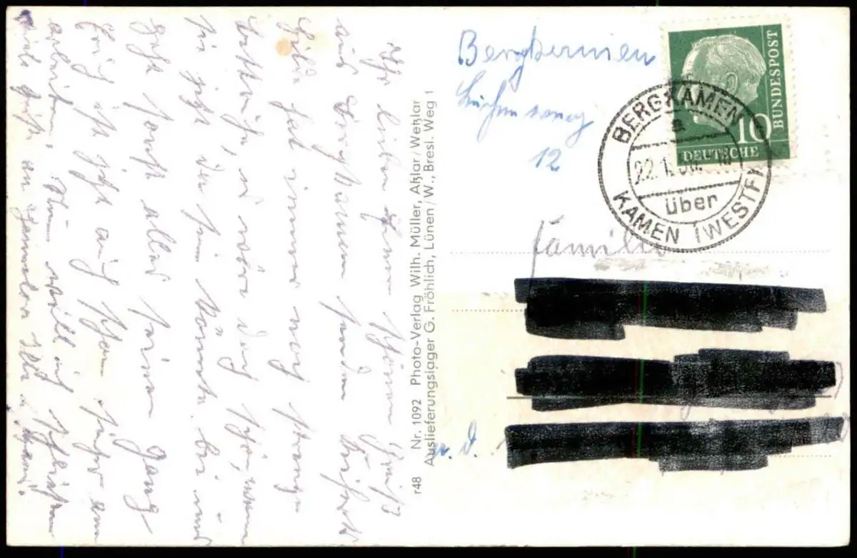 Gelaufen: 22.10.1956 mit Stempel Bergkamen über Kamen