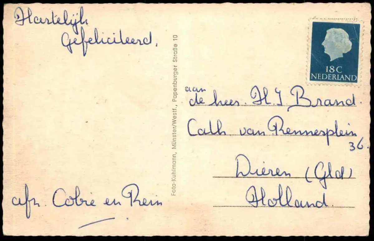 Gelaufen: nein, frankiert und beschrieben nach Dieren Holland