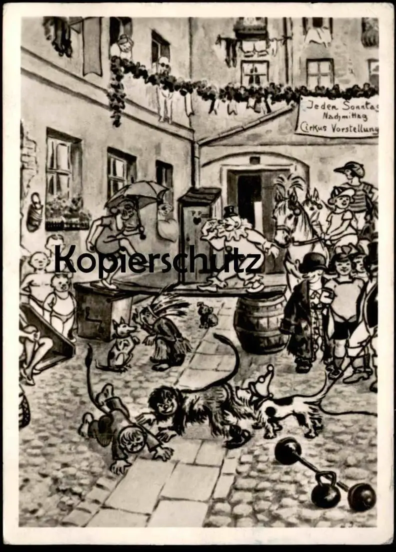 ÄLTERE POSTKARTE HEINRICH ZILLE KINDERSPIEL AUF DEM HINTERHOF MAXE MACHT DEN HUND JANZ NATÜRLICH ZIRKUS circus postcard