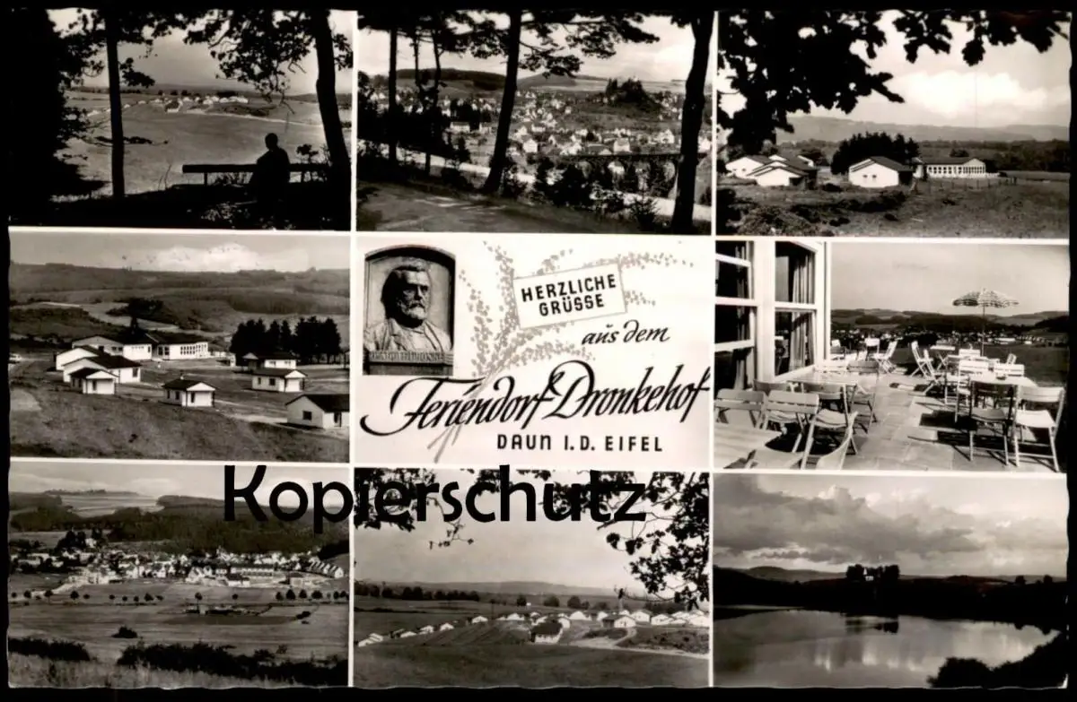 ÄLTERE POSTKARTE HERZLICHE GRÜSSE AUS DEM FERIENDORF DRONKEHOF EIFEL DAUN mit Ansicht Adolf Dronke Ansichtskarte