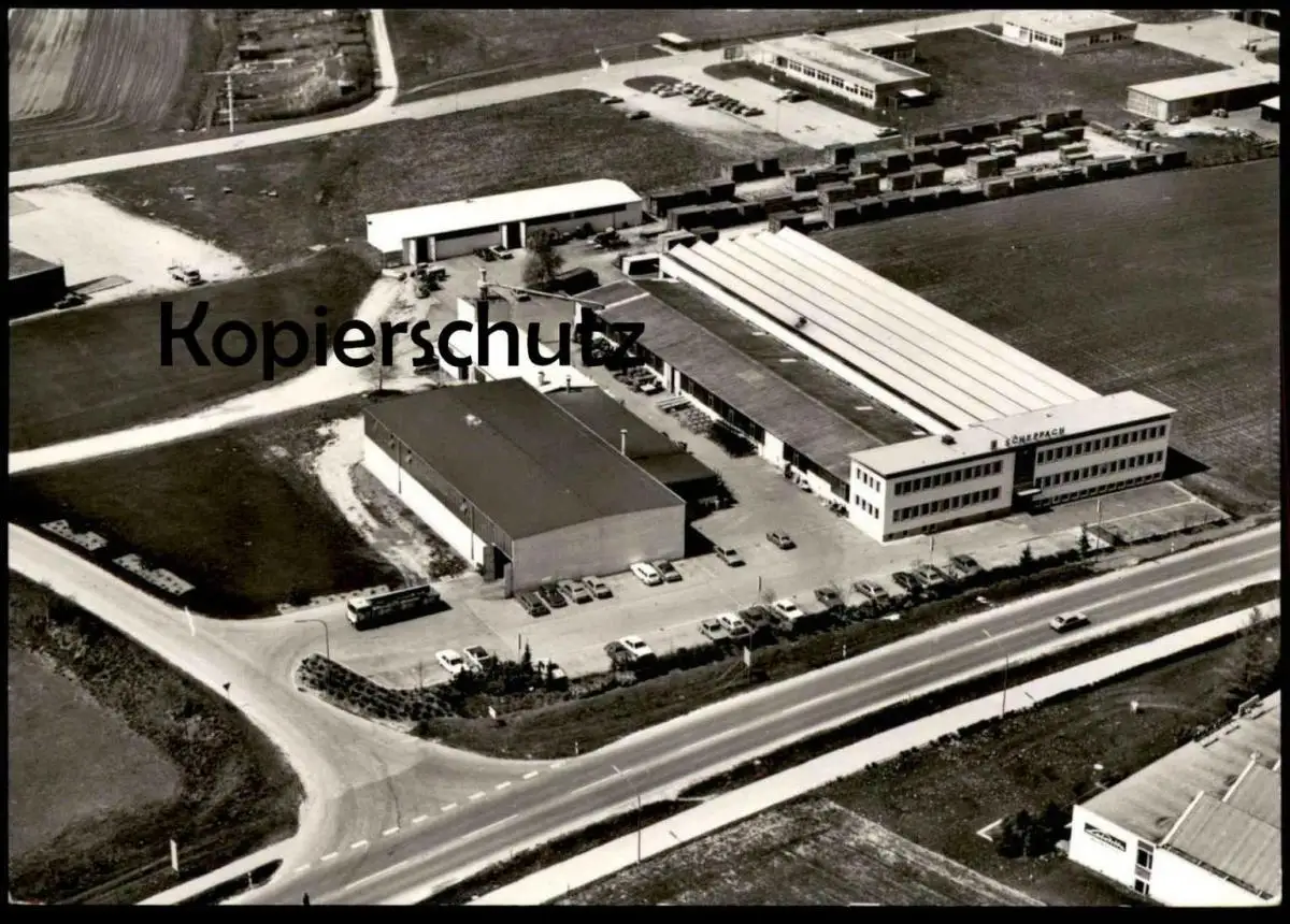ÄLTERE POSTKARTE ICHENHAUSEN LUFTAUFNAHME DER FIRMA JOSEF SCHEPPACH MASCHINENFABRIK Fabrik machine factory postcard