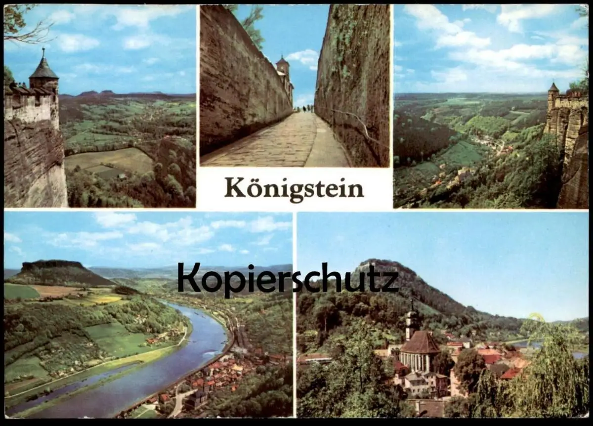 ÄLTERE POSTKARTE KÖNIGSTEIN SÄCHSISCHE SCHWEIZ BLICK INS BIELATAL STADT UND FESTUNG BLICK AUF ELBE UND LILIENSTEIN FESTUNGSAUFGANG BLICK VOM KÖNIGSTEINVerlag: Bild und Heimat, Reichenbach