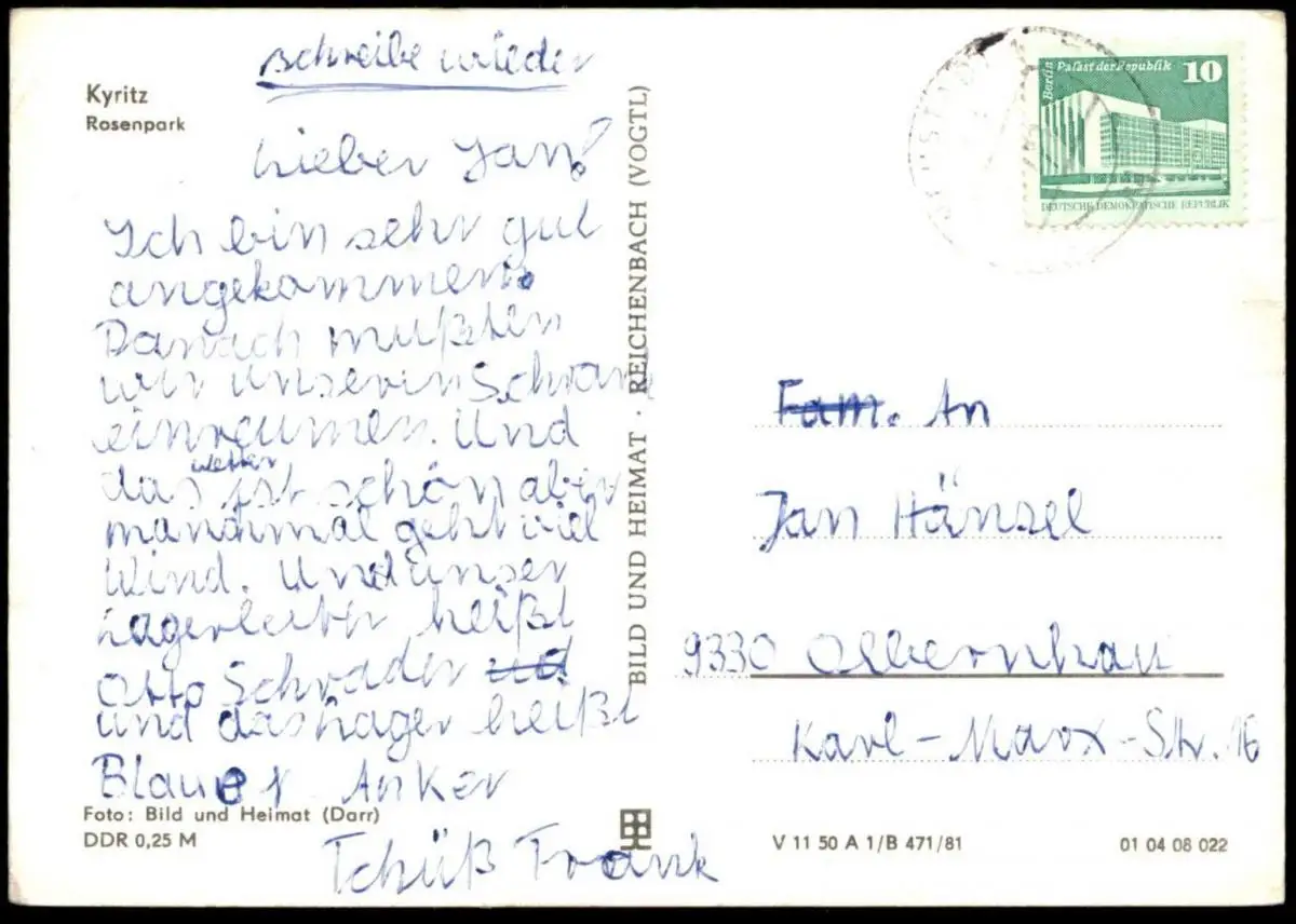 Gelaufen: xx.xx.1961 mit Stempel Neustadt nach Olbernhau