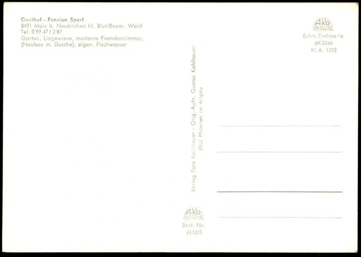 ÄLTERE POSTKARTE MAIS BEI NEUKIRCHEN HL. BLUT GASTHOF PENSION SPERL BAYERNVerlag: Kohlbauer, Pfronten; Foto: Gustav Kohlbauer