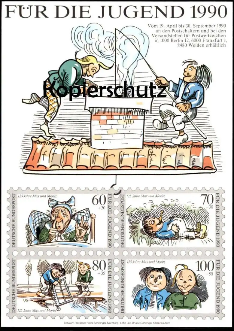 ÄLTERE POSTKARTE MAX UND MORITZ WILHELM BUSCH HAUS VON WITWE BOLTE BRIEFMARKE FÜR DIE JUGEND 1990Verlag: Gehringer, Kaiserslautern; Bildseite Werbeplakat Entwurf Professor Heinz Schillinger, Nürnberg