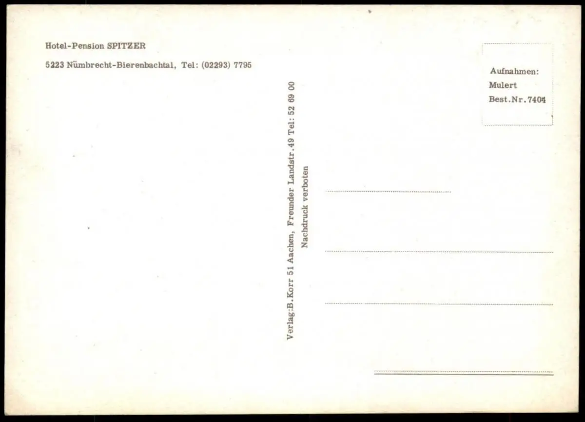 ÄLTERE POSTKARTE NÜMBRECHT-BIERENBACHTAL HOTEL-PENSION SPITZER postcard Ansichtskarte cpa AK