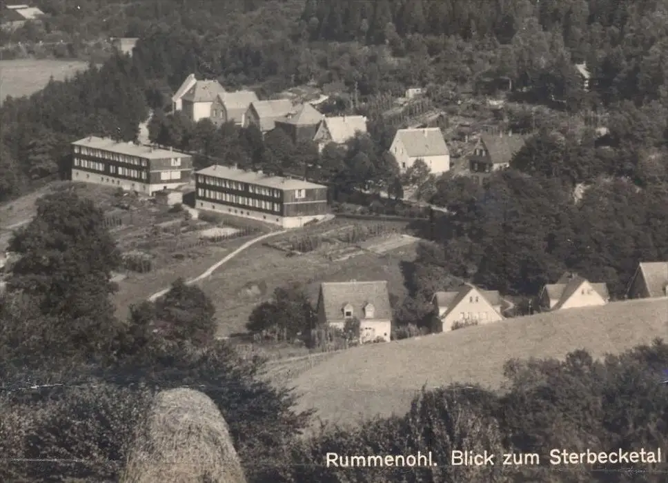 ÄLTERE POSTKARTE RUMMENOHL BLICK ZUM STERBECKETAL HEUHAUFENVerlag: Kettling & Krüger, Schalksmühle