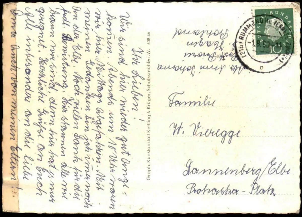 Gelaufen: 01.08.1960 nach Dannenberg mit Stempel Rummenohl (Ennepe)