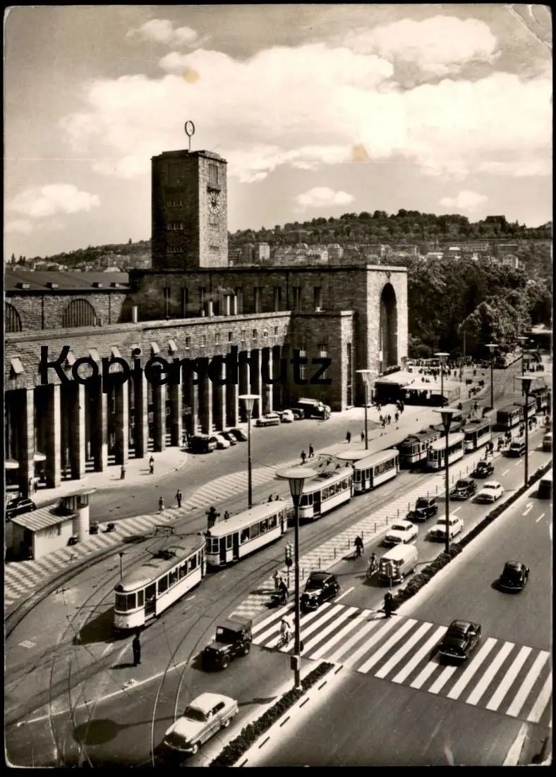 ÄLTERE POSTKARTE STUTTGART HAUPTBAHNHOF TAXEN STRASSENBAHN Bahnhof station gare traffic Ansichtskarte AK cpa postcard