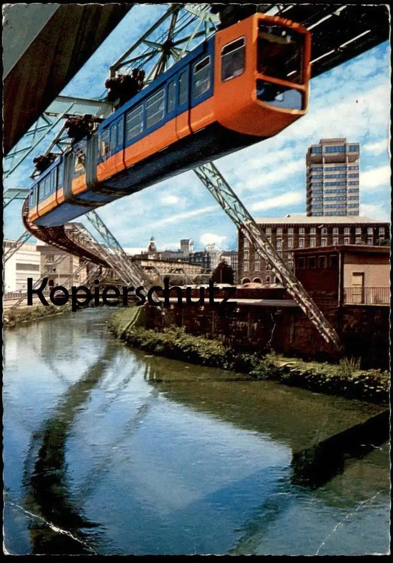 ÄLTERE POSTKARTE WUPPERTAL SCHWEBEBAHN & SPARKASSE ZUG TRAIN Bahn Eisenbahn Railway cpa postcard Ansichtskarte AK