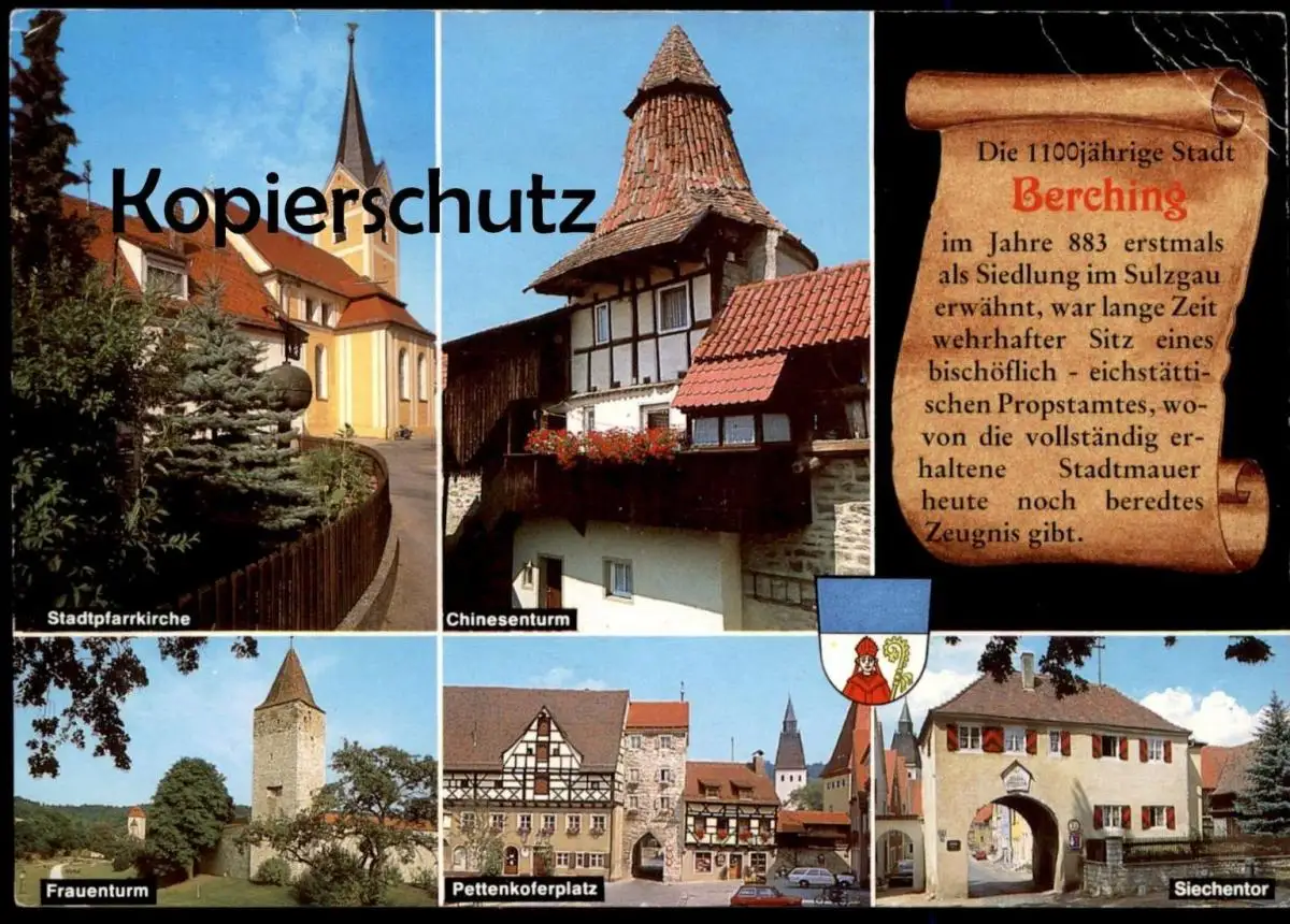 ÄLTERE POSTKARTE 1100-JÄHRIGE STADT BERCHING PETTERNKOFERPLATZ SIECHENTOR FRAUENTURM CHINESENTURM STADTPFARRKIRCHE