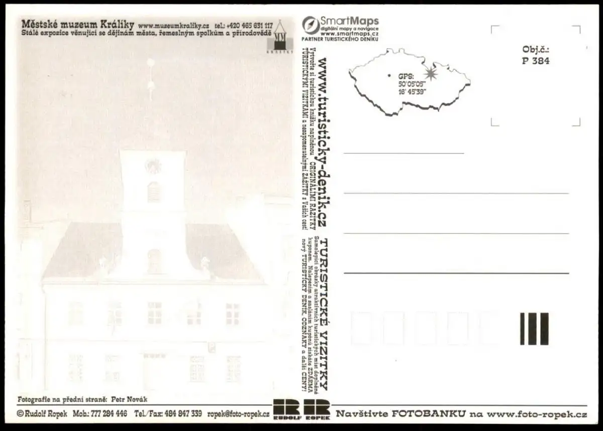 POSTKARTE KRÁLÍKY MESTSKE MUZEUM GRULICH MUSEUM STADTMUSEUM HOLZKRIPPE STANDUHR KÄFER SCHMETTERLING KRIPPE
