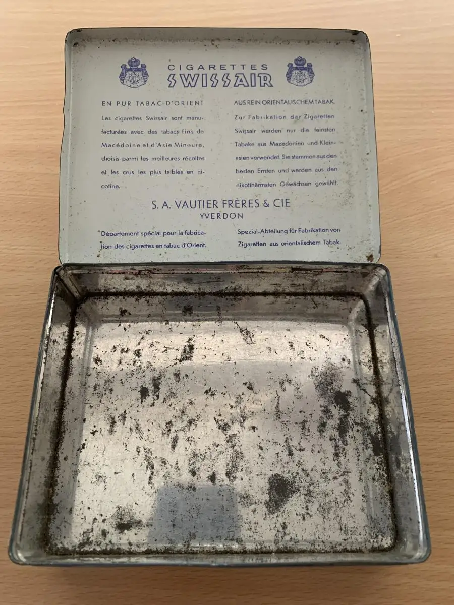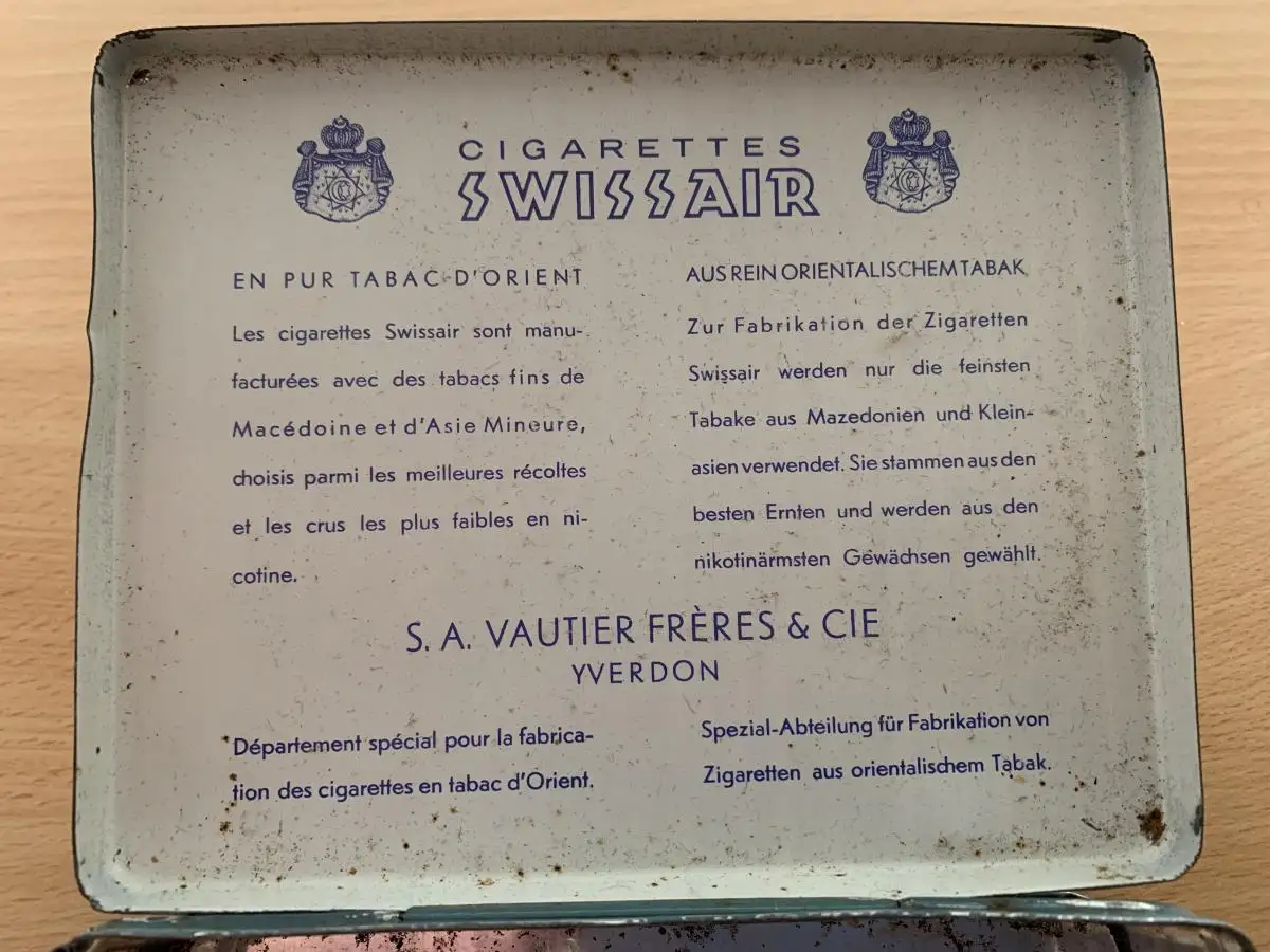 Alte Blechbox "CIGARETTES SWISSAIR", etwa 1930