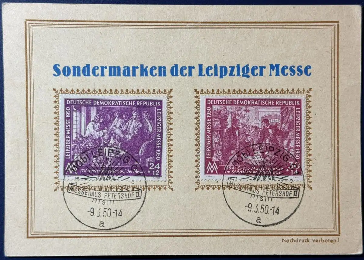 DDR, Sonderkarte Leipziger Messe, frankiert mit Mi.Nr. 248+249, ungelaufen, entwertet mit Sonderstempel vom 09.03.1950, saubere Stempel, sehr gute Erhaltung.