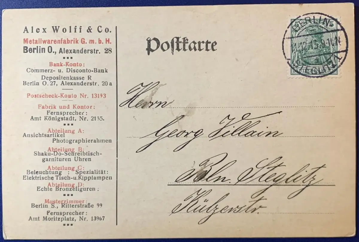 Postkarte, gelaufen mit Poststempel vom 11.12.13 in Berlin, Stempel gut lesbar, sehr gute Erhaltung.