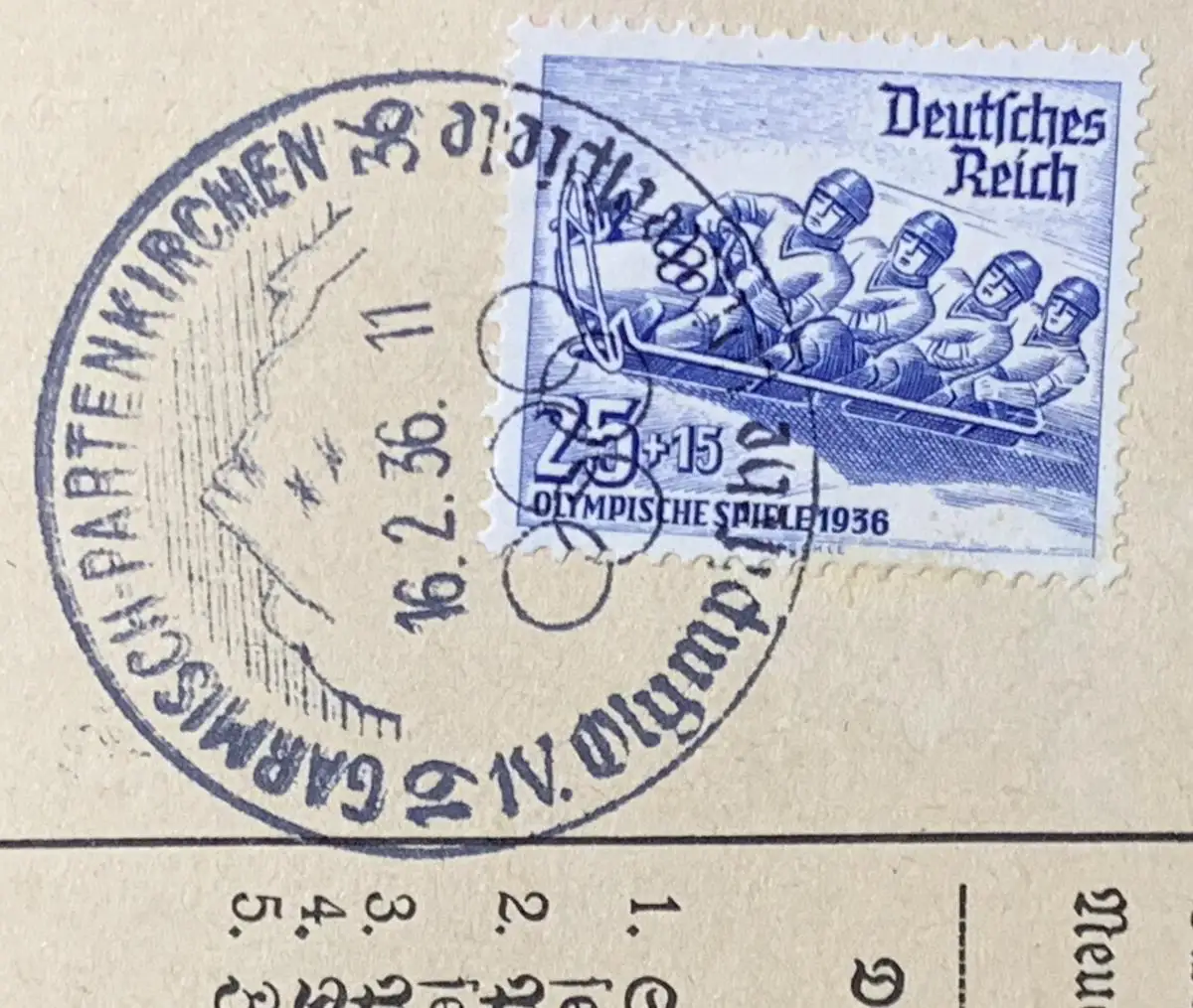 Postkarte, Nachsendungsantrag Blanko, ungelaufen, auf der Rückseite mit Mi.Nr. 602 frankiert, entwertet mit Sonderstempel (Olympische Winterspiele GAP) vom 16.02.1936, Karte ist ausgezeichnet erhalten, saubere Stempelung.