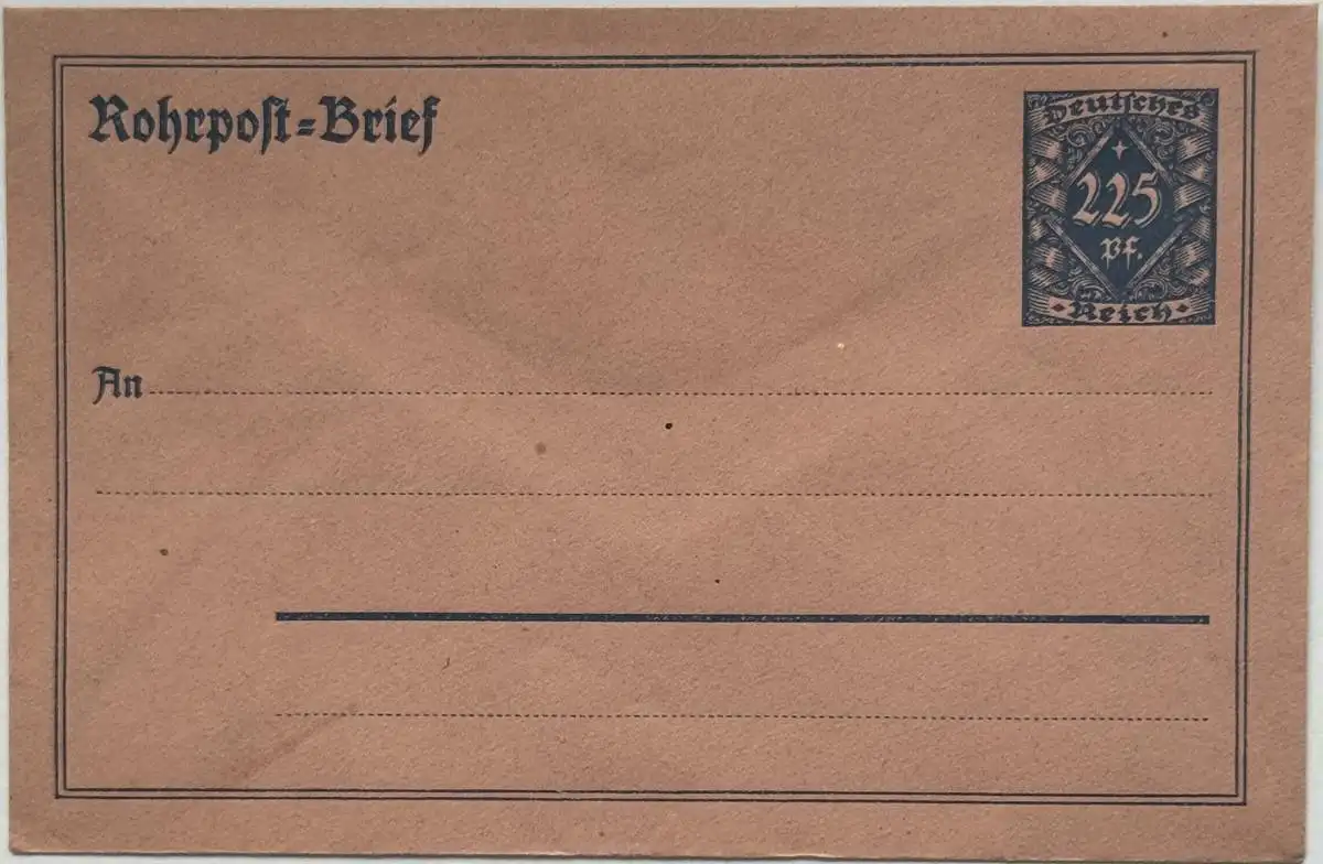 Rohrpostbriefe, Ganzsachen, 1921/1923, Mi.Nr. RU10 (225 Pfg.) und RU11 (100 Mark), Format 126x81 mm, ungelaufen, einwandfrei erhalten.
