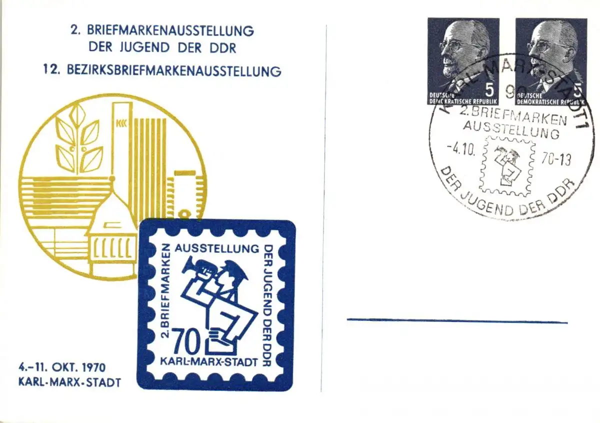 Karl-Marx-Stadt Briefmarkenausstellung der Jugend der DDR 1970 - PP 12 / 2 - 70