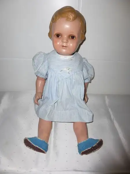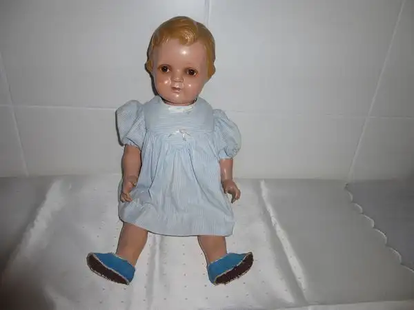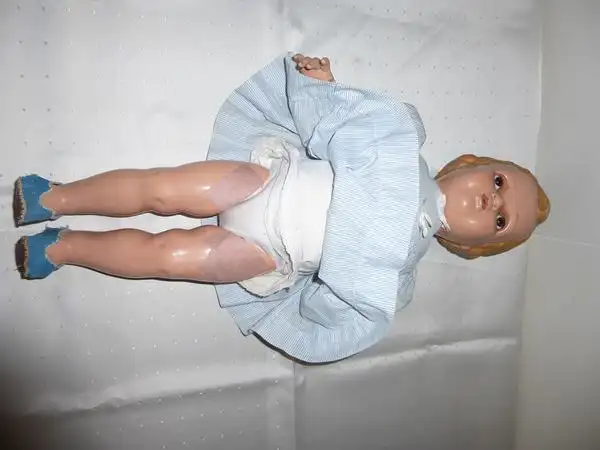 Die Puppe ist in einem altersgerechten guten gebrauchten Erhaltungszustand.