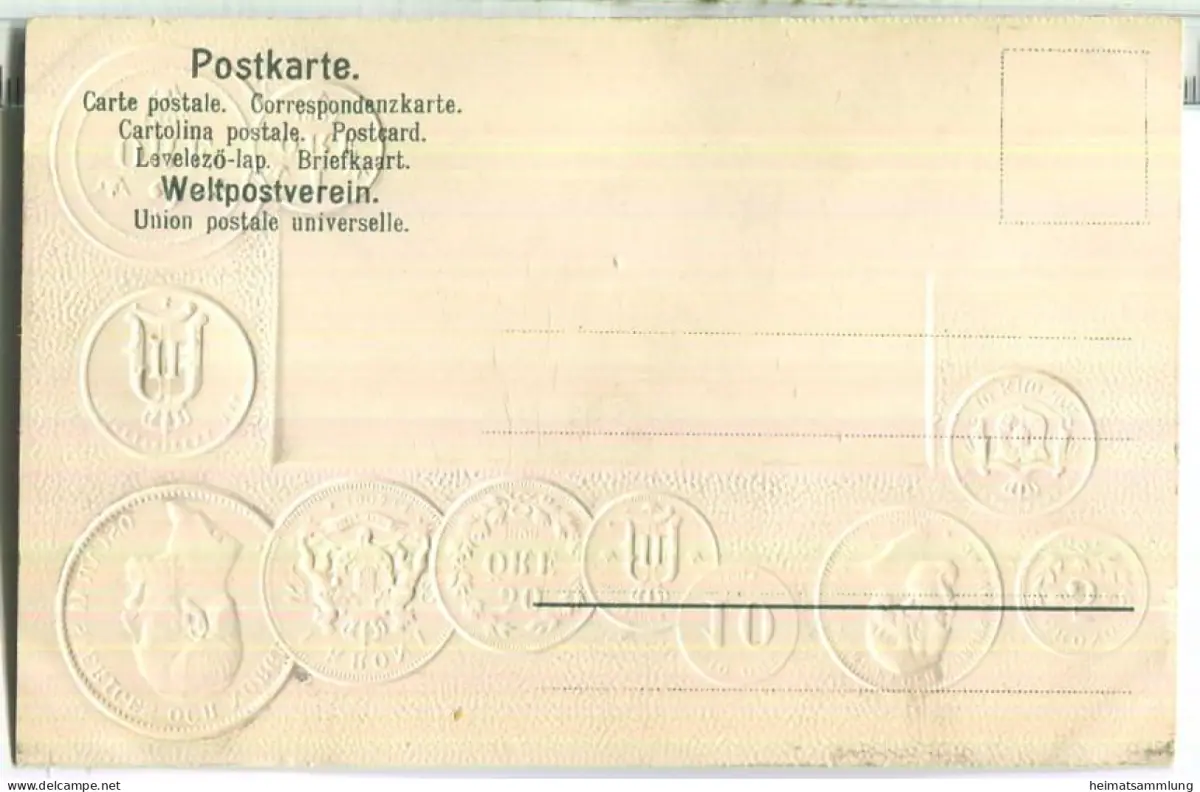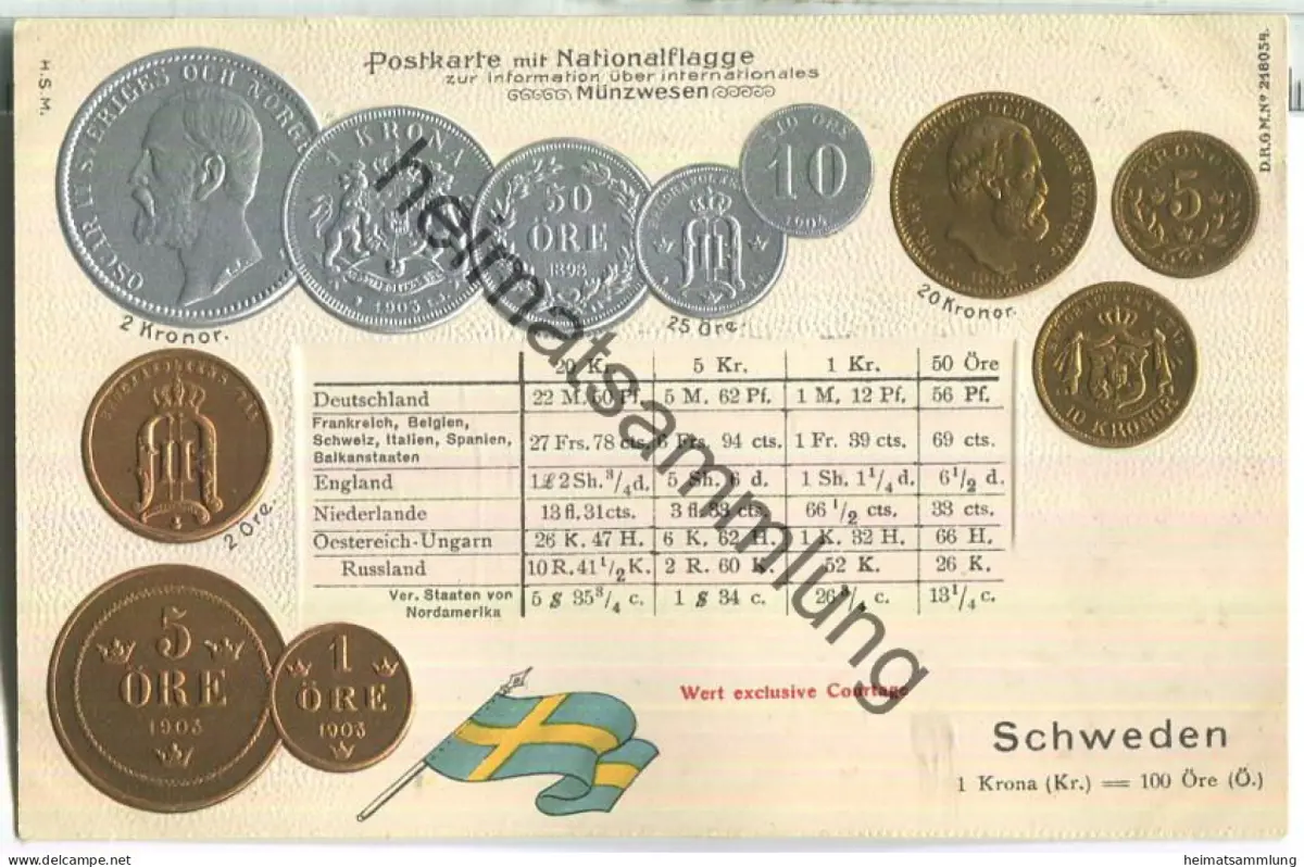 Münzkarte - Nationalflagge - Schweden - Prägedruck - Verlag H. S. M.