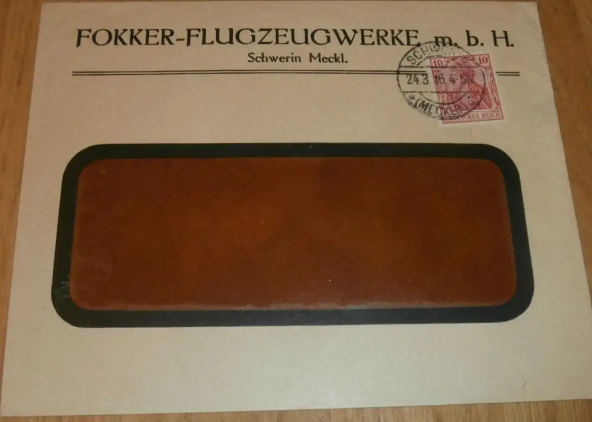Fokker - Flugzeugwerke Schwerin i.M , 1916 , alter Briefumschlag , Flugzeuge , Mecklenburg , extrem RAR !!AZ-WR/1N