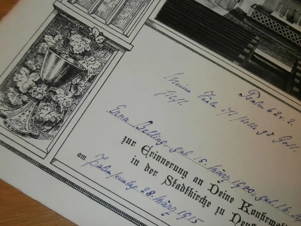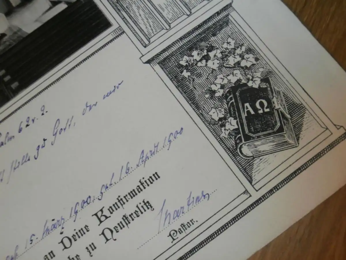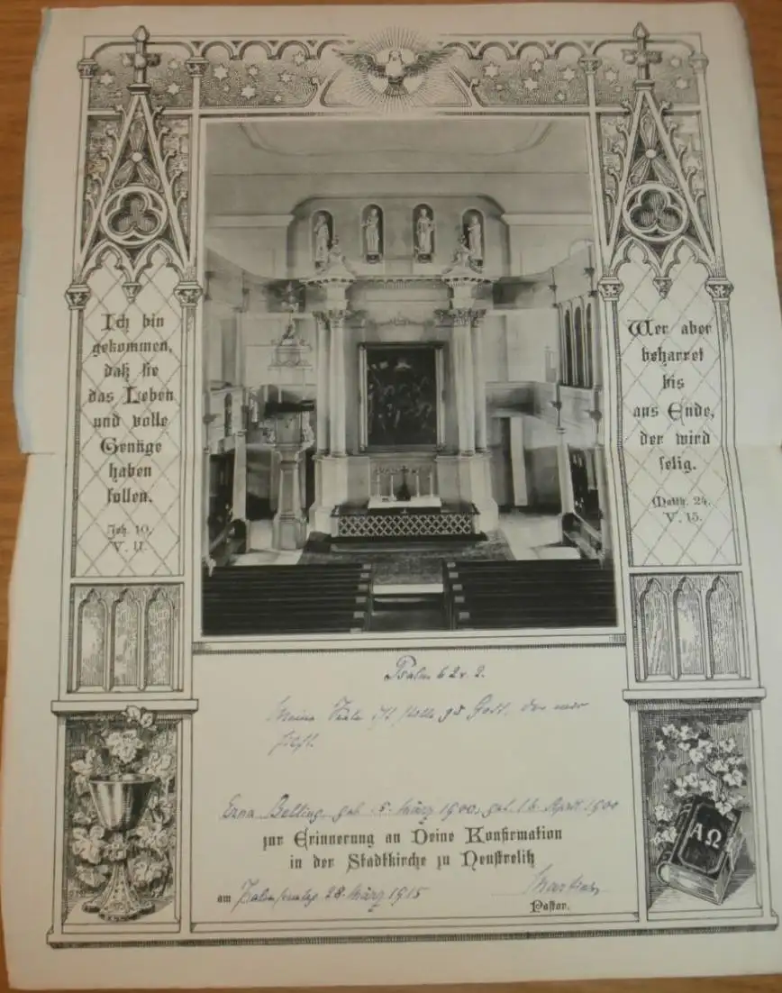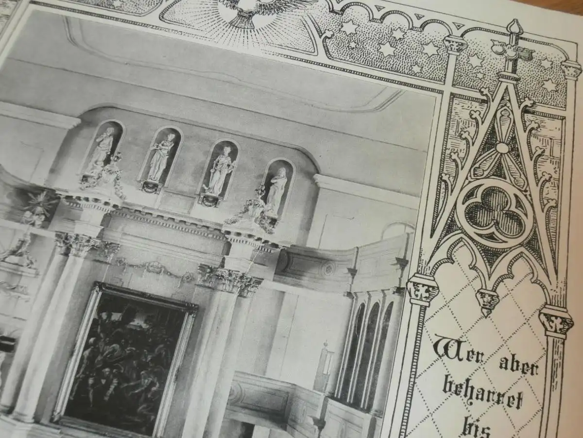 Inneres der Kirche Neustrelitz - 1900 - auf großer Urkunde zur Konfirmation v. Erna Belling , Mecklenburg !!