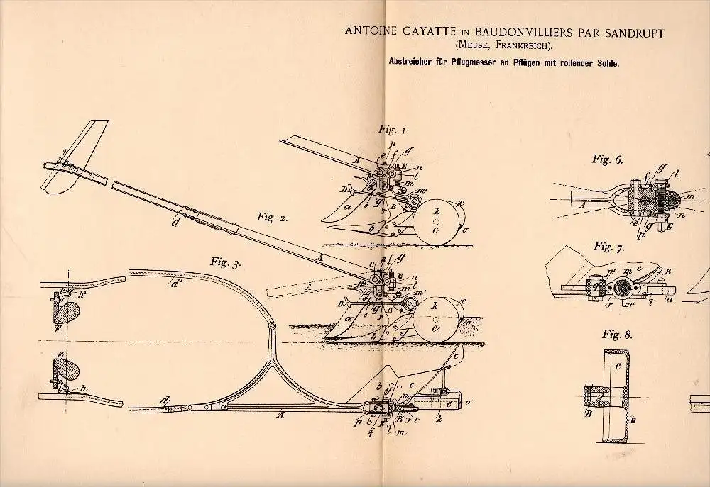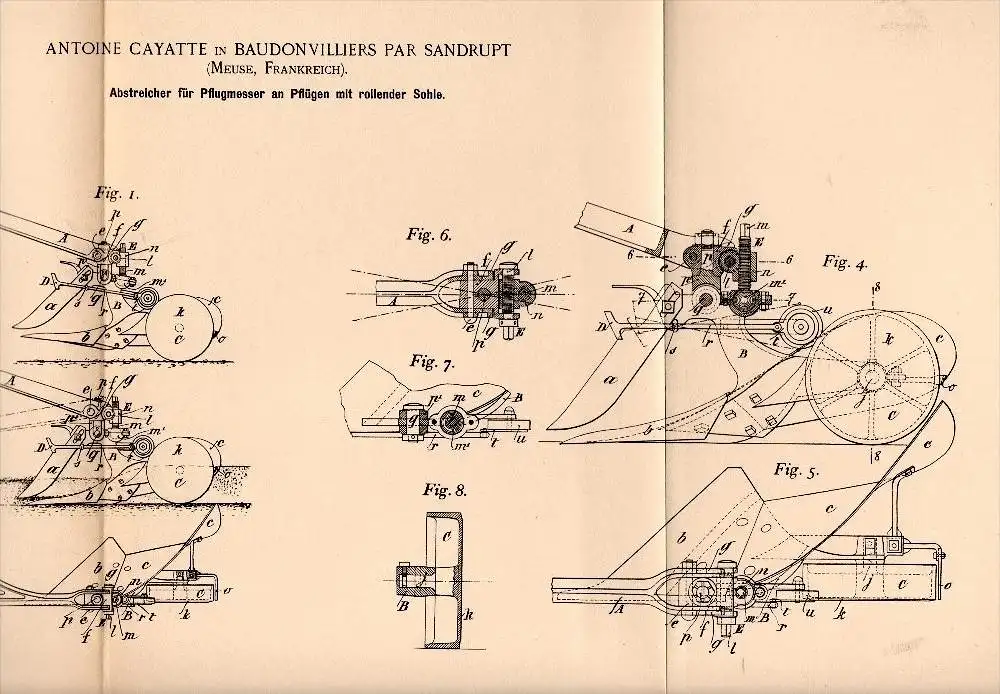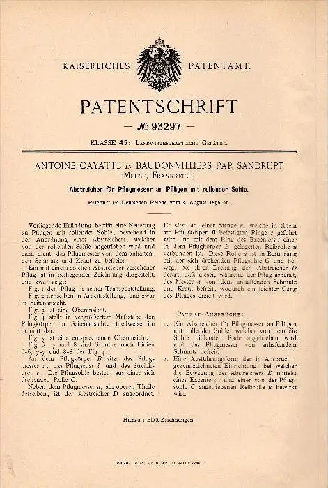 Original Patent - A. Cayatte dans Baudonvilliers par Sandrupt , 1896 , Couteaux pour charrue , agriculture , Meuse !!!
