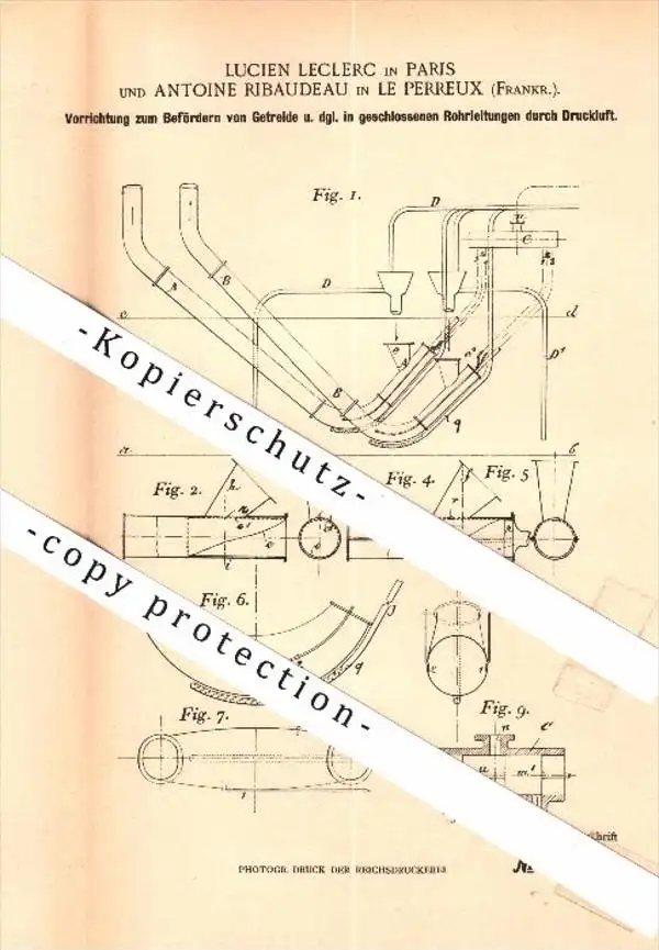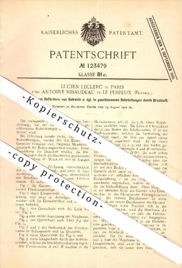 Original Patent - Antoine Ribaudeau in Le Perreux , L. Leclerc in Paris ,1900 , Dispositif pour les céréales !!!