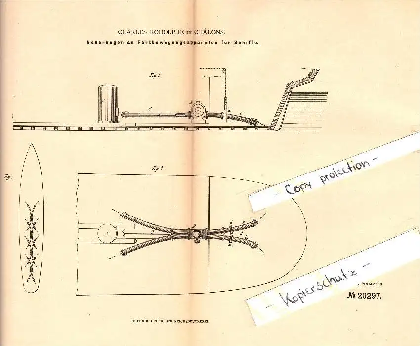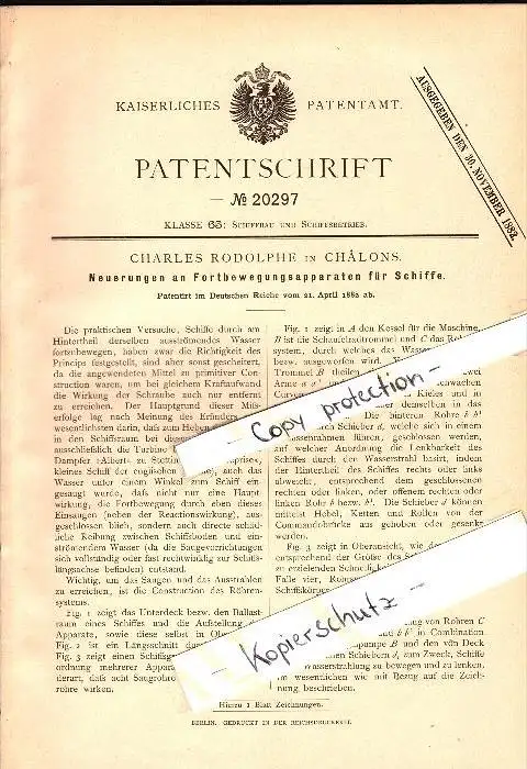Original Patent - Charles Rodolphe à Chalons-sur-Marne , 1882 , Appareils de locomotion pour les navires , en-Champagne