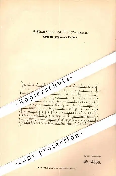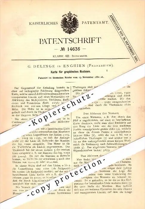 Original Patent - G. Delinge à Enghien-les-Bains , 1880 , Plan pour l'informatique graphique !!!