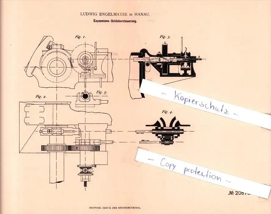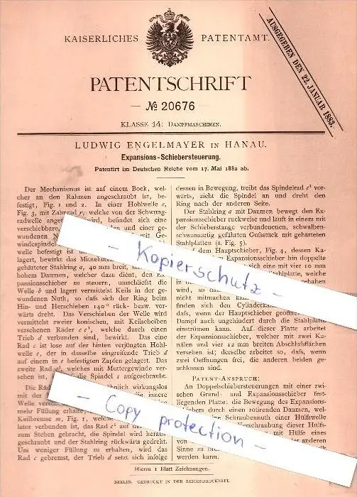 Original Patent - Ludwig Engelmayer in Hanau , 1882 , Expansions-Schiebersteuerung !!!