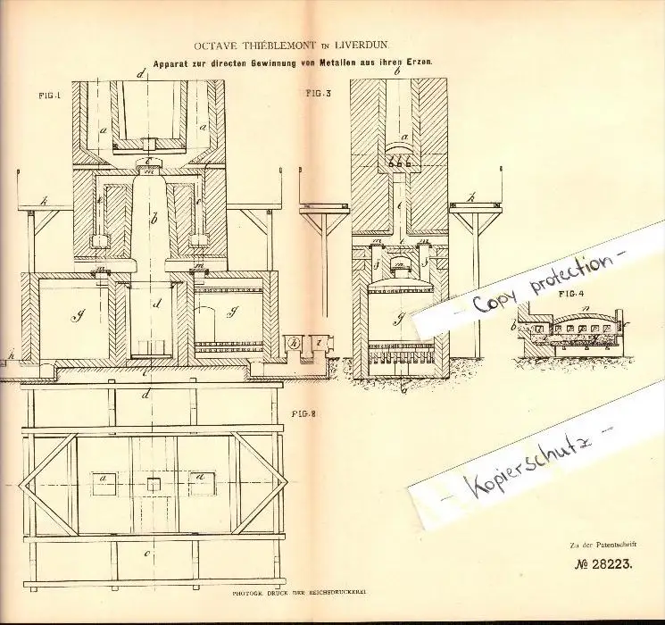 Original Patent - Octave Thiéblemont à Liverdun , 1883 , Appareil pour récupérer du métal à partir de minerais !!!
