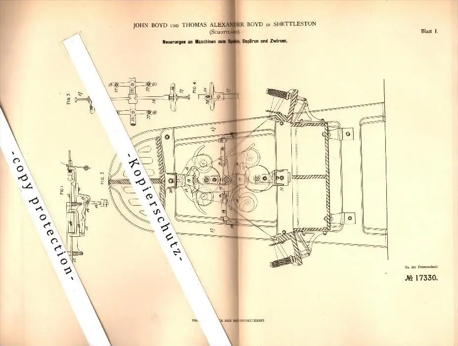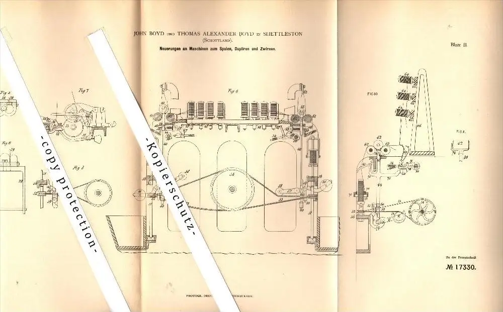 Original Patent - Thomas Boyd in Shettleston , Scotland , 1881 , Machine for spinning !!!