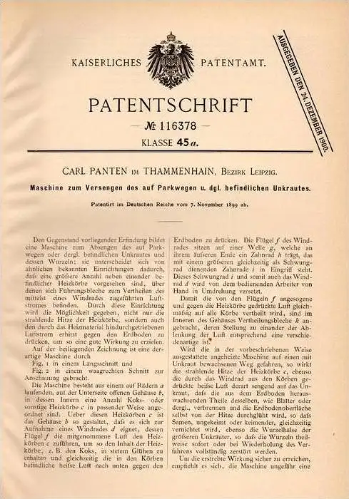 Patent: Maschine zum Versengen des auf Parkwegen befindlichen