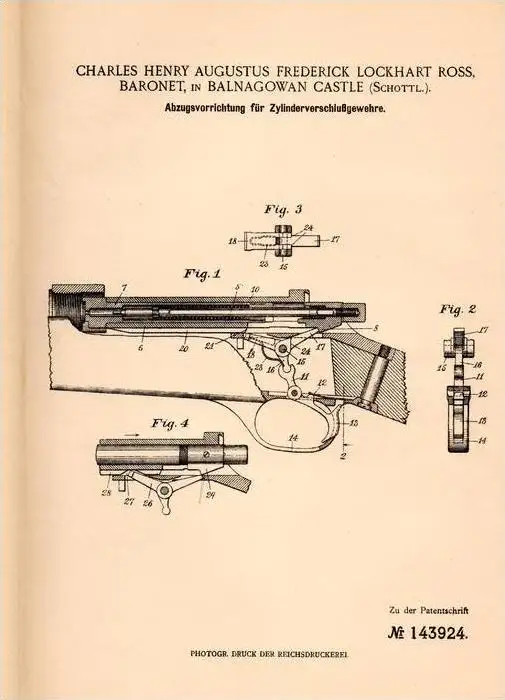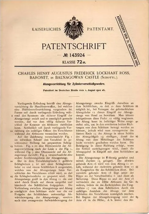 Original Patentschrift - Ch.H. Ross , Baronet in Balnagown Castle , 1902 , Rifle, weapon, hunting, hunter , Kildary