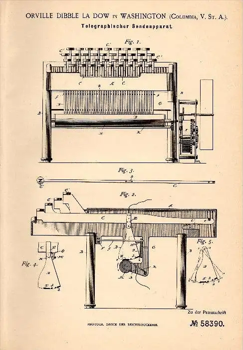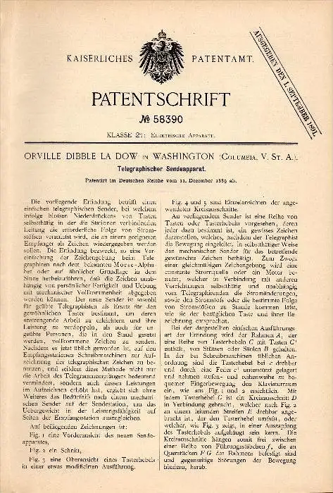 Original Patentschrift - Dibble La Dow in Washington , 1889 , Transmission apparatus for telegraphy , Telegraphie !!!