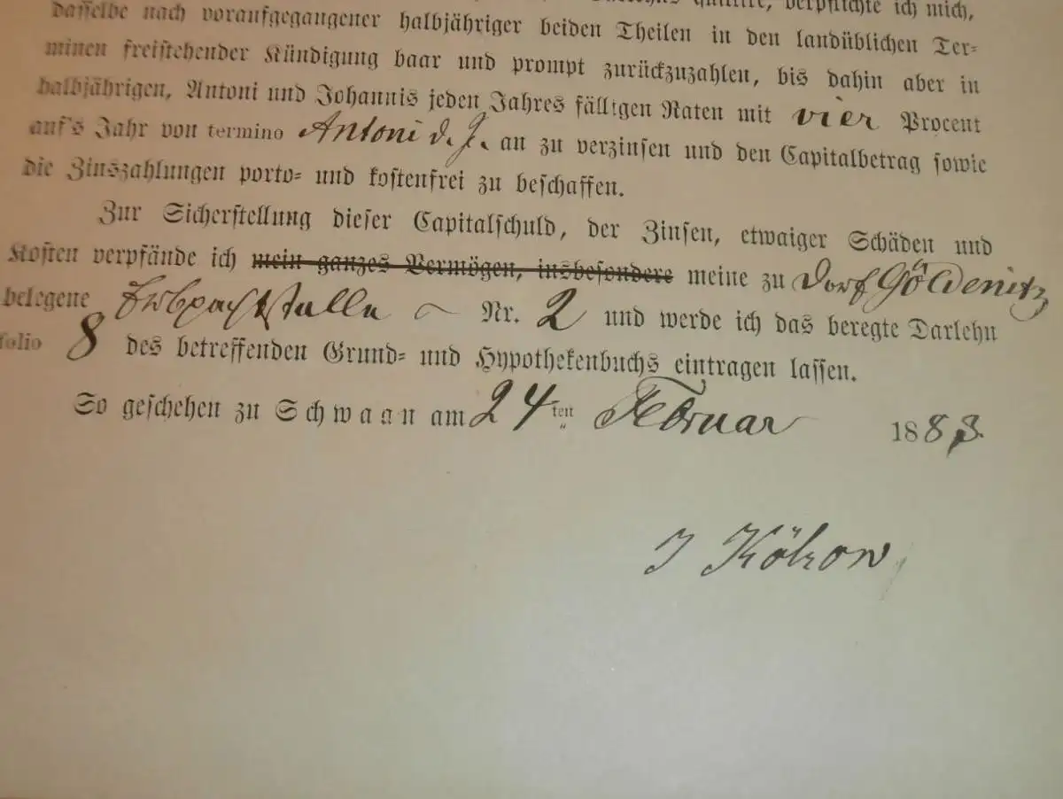Schuld-Acte , Dorf Göldenitz , 1883 , Sophie Zöllich geb. Kölzow , Schwaan , Hypothek , Mecklenburg !!