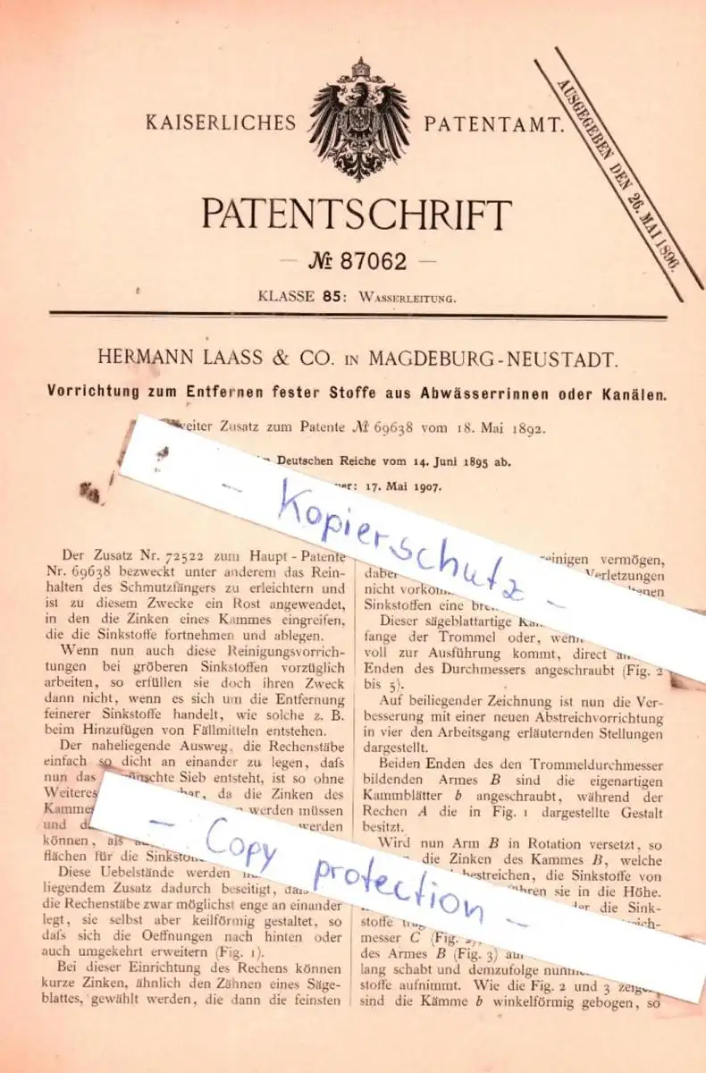original Patent - Hermann Laass & Co. in Magdeburg-Neustadt , 1895 , Wasserleitung !!!