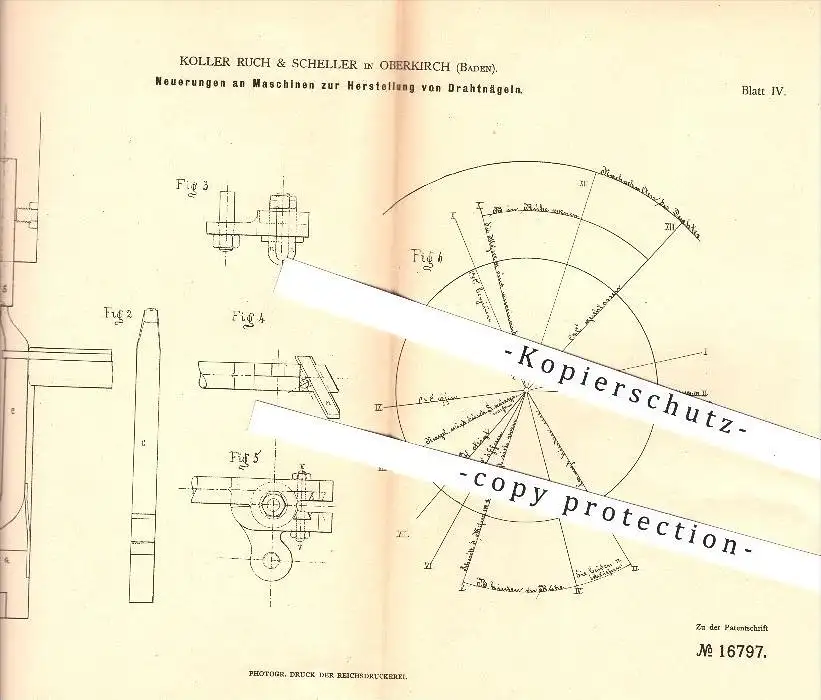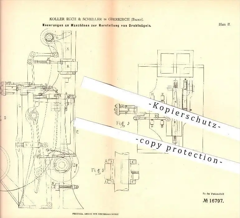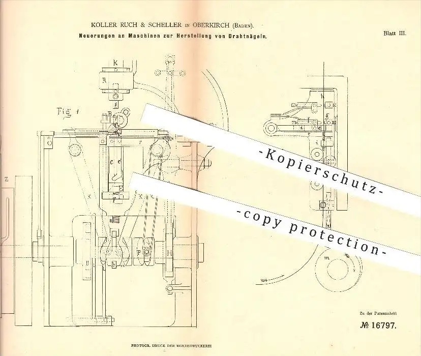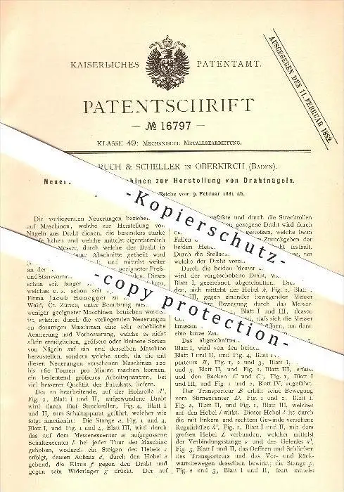 original Patent - Koller Ruch & Scheller in Oberkirch , 1881 , Herstellung von Drahtnägeln , Nägel , Nagel , Metall !!!