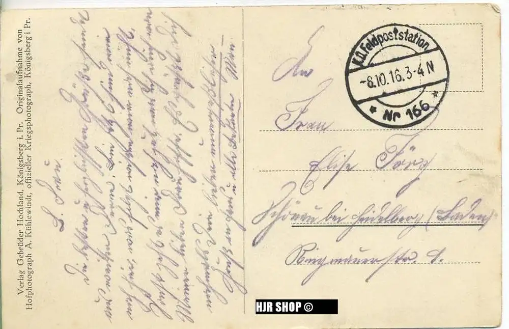 um 1910/1920 Ansichtskarte (Feldpost “Wilna“, gelaufene Karte mit Stempel und minimalen Alters- und Beförderungsspuren, minimale Beschädigung