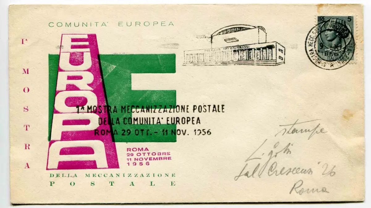 Europa I. Ausstellung Postbearbeitung - Gedenkumschlag - Europa I. Ausstellung Postmechanisierung - Gedenkumschlag ohne Symbol und Angabe des Venetia Clubs, aber auf sie zurückzuführen auf die Grafik mit spezieller mechanischer Annullierung von Rom - gereist Drucke an Ligotti gerichtet, ohne Annullierung der Ankunft Gelegentlich Nr. 726/5