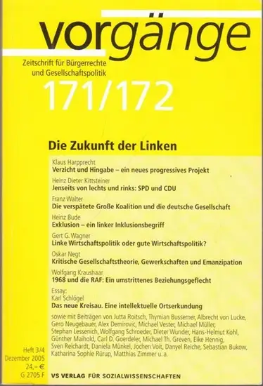 vorgänge.- Thymian Bussemer, Alexander Cammann, Klaus Harpprecht, Heinz Dieter Kittsteiner u.v.a: Die Zukunft der Linken - vorgänge. Nr. 171 / 172. Heft 3/4, Dezember 2005, 44. Jahrgang - Zeitschrift für Bürgerrechte und Gesellschaftspolitik.